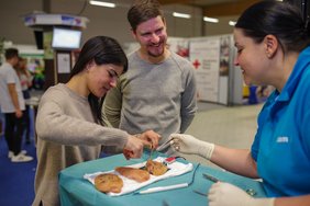 Dieser Meinung schloss sich auch Martin Kuulmann von der Technischen Hochschule Mittelhessen an: „Wir hatten viele unterschiedliche Altersgruppen am Stand, die sich informiert haben. Die Gespräche waren alle von hoher Qualität, egal ob mit Schülern oder Abiturienten, die demnächst anfangen möchten zu studieren.“ Bei der Allianz Versicherung wurden sogar schon fertige Bewerbungen abgegeben und die Mitmachangebote am Stand der Lahn-Dill-Kliniken wurden von den Besuchern gut angenommen, sodass man auch dort auf viele eingehende Bewerbungen im Nachgang der Messe hofft.